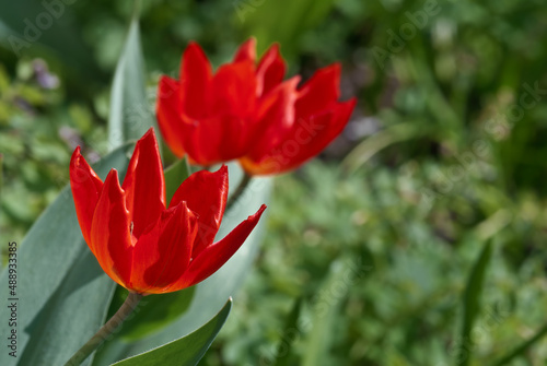 Fototapeta premium Tulipa praestans 'Fusilier' in garden