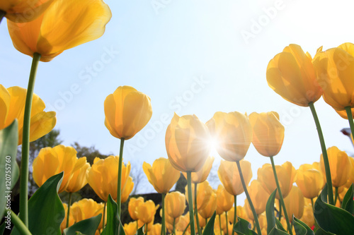 © sakura, Obraz premium Tulipan i wielkie błękitne niebo