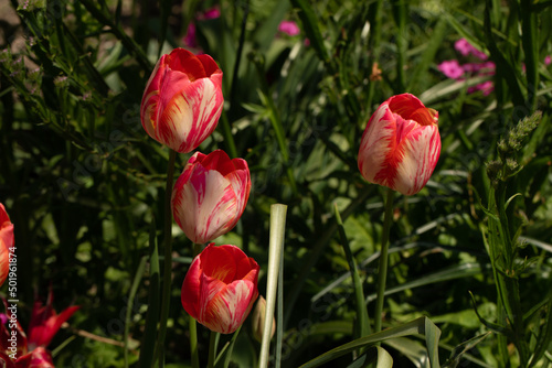 © enrico, Fototapeta premium tulipani rossi e bianchi nel prato del giardino a primavera