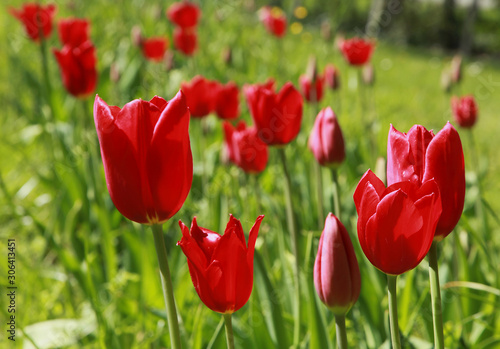 Obraz premium Tulipes rouges dans une pelouse au printemps