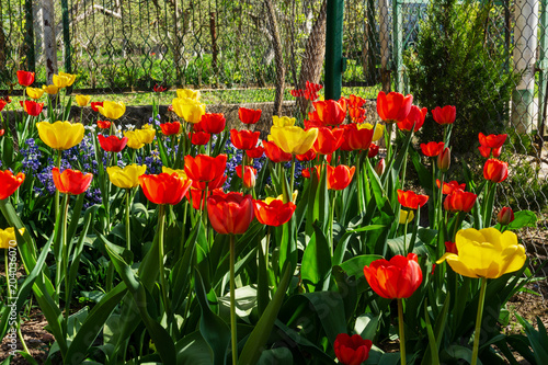 © Oleksandr Masnyi, Fototapeta premium Tulips blossom in the park in the spring