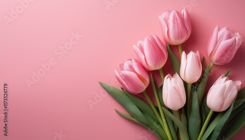 © IrenaBlechova, Naklejka premium tulips bouquet on pink background with copy space wallpaper