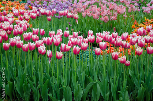 Fototapeta premium tulips, bright beautiful color, bloom in the garden in the open field