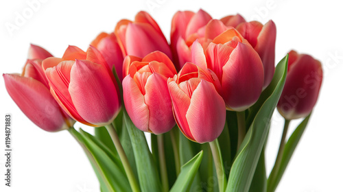 © MONWARA, Fototapeta premium Tulips bunch isolated on a transparent or white background