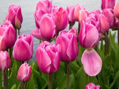 © pr2is, Fototapeta premium Tulips decorate the seaside walk in Sidney, Vancouver Island, British Columbia