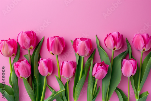 © Sarawut, Fototapeta premium Tulips on a pink background, Generative AI