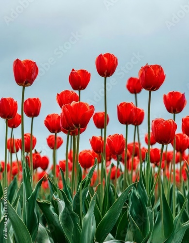 © Wajeeb, Fototapeta premium tulips on a warm abstract blue background