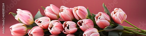 © PinkiePie, Fototapeta premium tulips on pink background, copy space