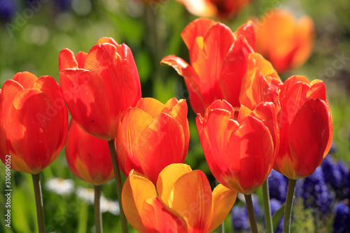 Fototapeta premium Tulpenbeet mit rot-gelben Blüten im Garten