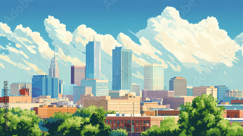 © Thiago, Obraz premium Tulsa oklahoma city skyline view a summer day. Shaded Horizon. Illustration