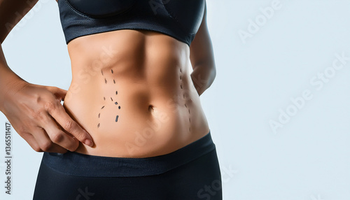 Fototapeta premium 3-8-253-Tummy tuck abdominal wall restructuring. Emphasize the negative space...