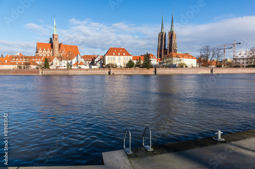 Obraz premium Tumski island and Odra river in Wroclaw, Silesia, Poland