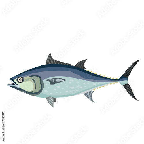 Naklejka premium tuna fish in blue color, cartoon illustration, isolated object on white background, vector,