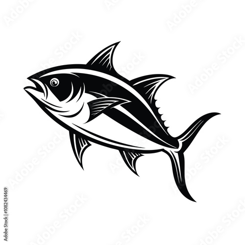 © Helal, Obraz premium tuna fish vector design, labeled line art and linocut silhouette illustration.