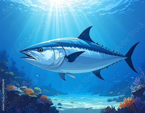 © beyond, Obraz premium Tuna in coral reef underwater scene