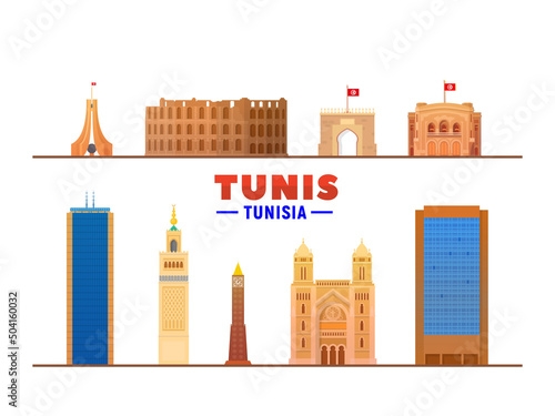 Fototapeta premium Tunis, ( Tunisia ) landmarks vector illustration on white background. Business travel and tourism concept with modern buildings. Image for presentation, banner, web site.