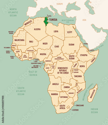 © Puake, Obraz premium Tunisia Map Outline Vector Art Illustration for Geographical Projects