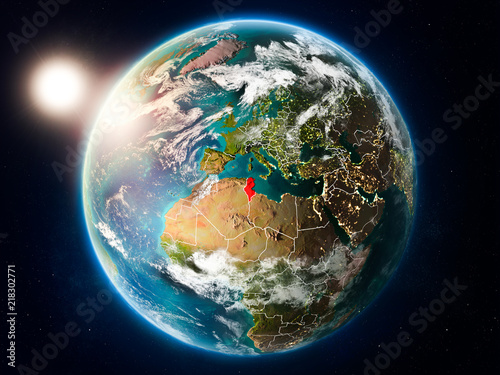 © harvepino, Fototapeta premium Tunisia with sunset from space