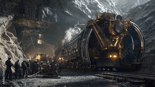 Naklejka premium Tunnel Boring Machine Emerging From a Newly Constructed Tunnel