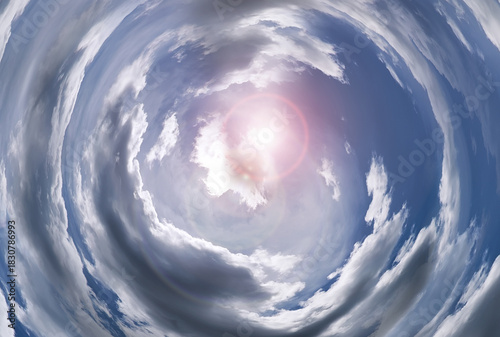 Fototapeta premium Tunnel from clouds background texture watercolor fairy-tale design unusual...