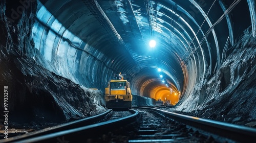 © WITTAYA ANGMUJCHA, Obraz premium Tunnel illuminated by bright lights miner at work creating new passage powerful sense of progress and determination underground construction