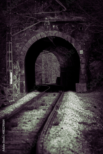 © ORV_71, Fototapeta premium Tunnel on train tracks in black and white