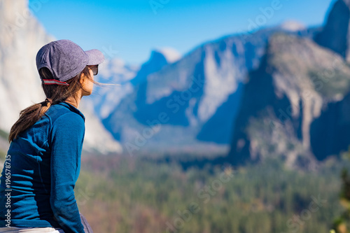 © Larry Zhou, Naklejka premium Tunnel View, woman looking off into the valley