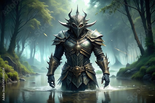© kittipon, Fototapeta premium Turbid water ominous predator stalking prey deadly precision ancient armor