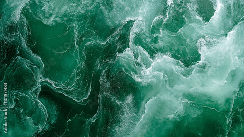 © Sadia, Fototapeta premium Turbulent green ocean waves create a mesmerizing natural pattern in sunlight