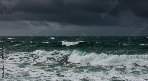 Fototapeta premium Turbulent ocean waves representing nature's power and dramatic weather, with...