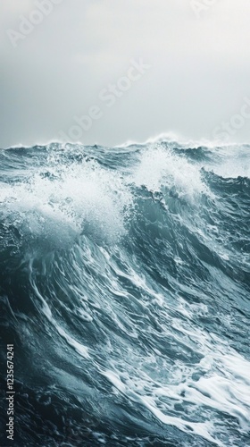 Fototapeta premium Turbulent Ocean Waves with Splashing Water Against Gray Sky