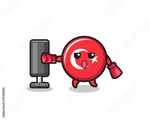 Fototapeta premium turkey flag boxer cartoon doing training with punching bag