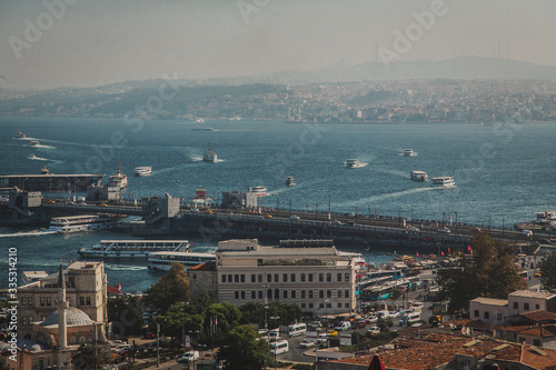 Fototapeta premium Turkey, Istanbul city, Bering Strait top view of the city.