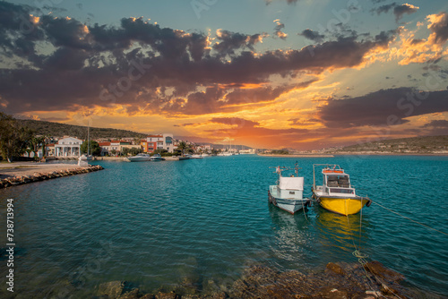 © mylasa, Fototapeta premium Turkey - Izmir -Çeşme District; Sunset at Alaçatı beach.