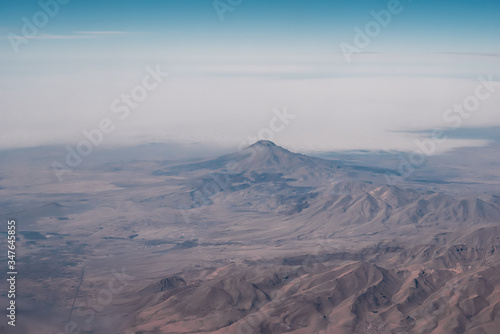 Fototapeta premium Turkey mountain landscape panorama, view from airplane window.