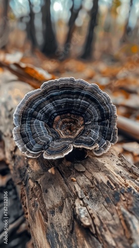 © Denis, Fototapeta premium Turkey Tail Medicinal Mushroom (Trametes versicolor) on a tree
