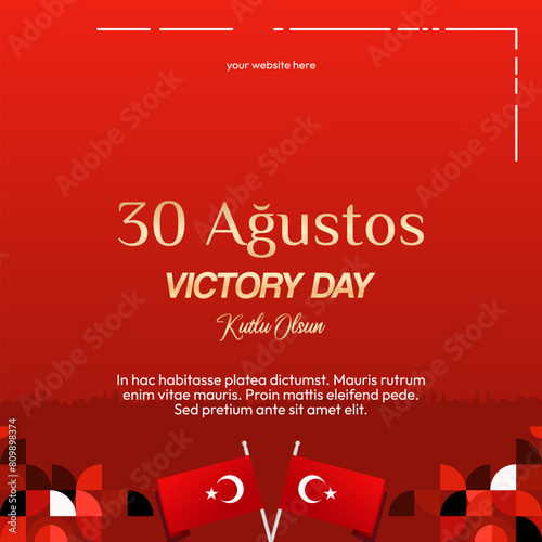 © Naufal Milan Design, Naklejka premium Turkey Victory Day square banner in modern geometric style with red monochrome color. Turkish National Day greeting card template illustration on August 30. Happy Victory Day Turkey