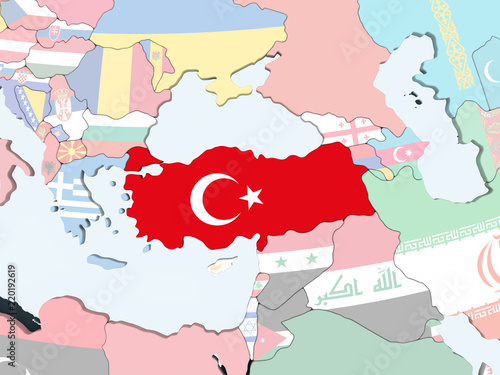 © harvepino, Obraz premium Turkey with flag on globe