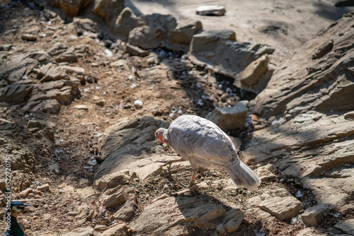 Obraz premium Turkeys walk and forage under bright daylight
