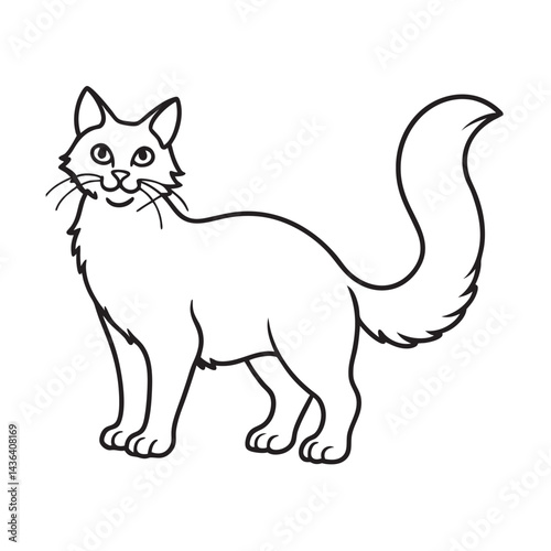 Fototapeta premium Turkish Angora Cat Fluffy Outline