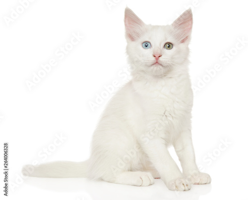 © jagodka, Fototapeta premium Turkish Angora kitten sitting on a white background
