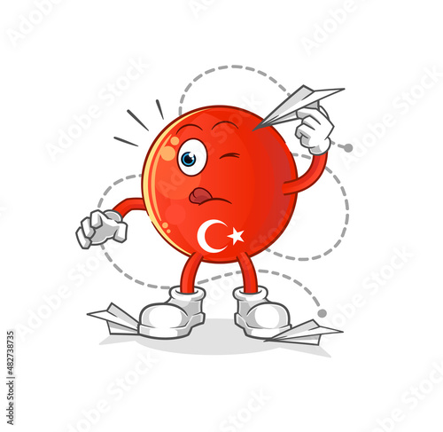 Fototapeta premium turkish flag with paper plane character. cartoon mascot vector
