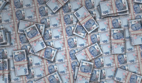 © Skórzewiak, Fototapeta premium Turkish lira money banknotes pack illustration