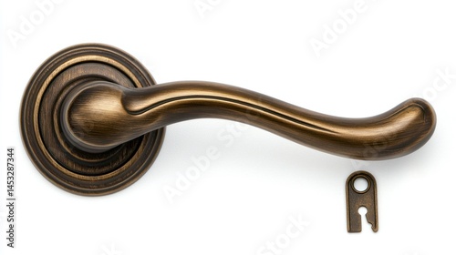 © Creations Photo , Obraz premium Turn-style bronze door handle with a matching keyhole, isolated on white