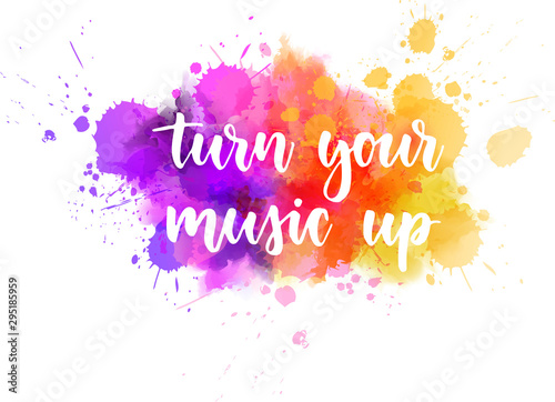 © Artlana, Obraz premium Turn your music up lettering on watercolor splash