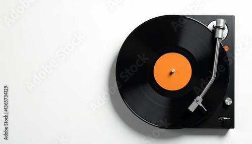 © anulak, Obraz premium Turntable vinyl record player on white background, top view, spinning, isolated