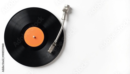 © Hiran, Fototapeta premium Turntable with vinyl record isolated on white background , classic, black, spin