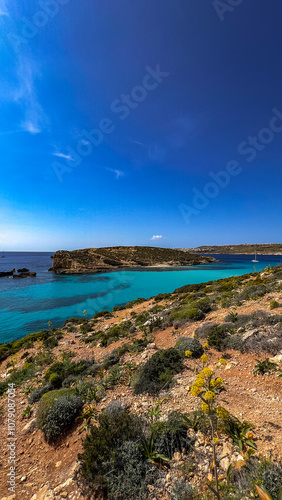 © Gebe, Fototapeta premium Turqoise water at the blue lagoon near the rocky beach