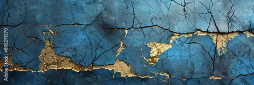 Obraz premium Turquoise and Dark Marble Texture with Gold Cracks