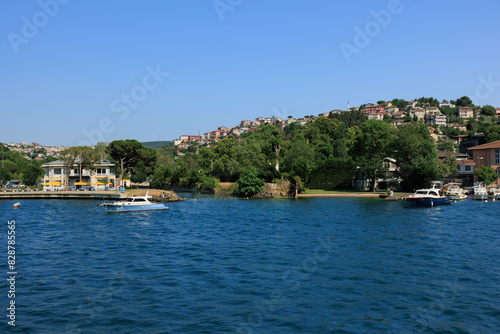 Obraz premium Turquoise blue sea water. View of the Bosphorus in Istanbul city on sunny...